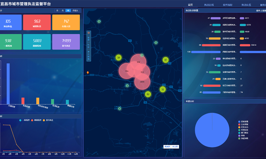 即刻了解為服務(wù)宜昌市高質(zhì)量發(fā)展,建立健全文明城市創(chuàng)建長效機(jī)制,鞏固文明城市創(chuàng)建成果,根據(jù)國家、湖北省城市管理相關(guān)會議精神和工作要求,構(gòu)建宜昌市城市管理執(zhí)法監(jiān)督平臺,覆蓋市級城管執(zhí)法部門,6個區(qū)8個縣的區(qū)屬執(zhí)法部門、鄉(xiāng)鎮(zhèn)(街道)綜合執(zhí)法中心,共計執(zhí)法部門105個,執(zhí)法人員900余人。