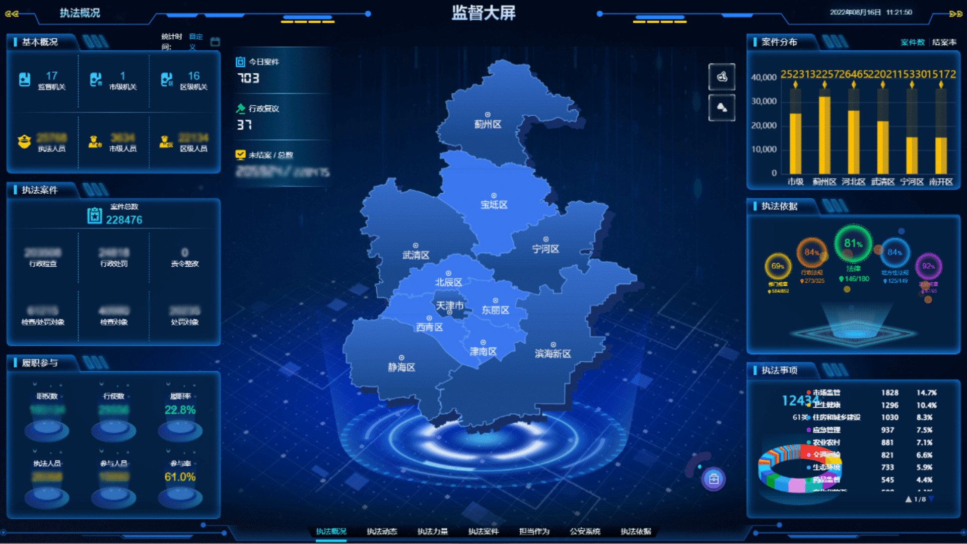 天津市政府建成行政執(zhí)法監(jiān)督平臺,是全國率先探索能夠覆蓋全部行政執(zhí)法部門、記錄全部行政執(zhí)法過程、兼顧宏觀法制環(huán)境和微觀執(zhí)法行為的執(zhí)法監(jiān)督平臺,平臺經(jīng)過多年豐富的實踐經(jīng)驗積累,獲得國務(wù)院相關(guān)部門和各省市的廣泛關(guān)注,在國內(nèi)的執(zhí)法領(lǐng)域中具有里程碑式的影響力。