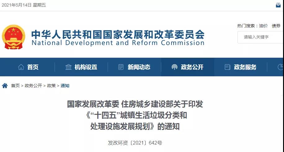 國(guó)家發(fā)展改革委、住房城鄉(xiāng)建設(shè)部日前發(fā)布《“十四五”城鎮(zhèn)生活垃圾分類和處理設(shè)施發(fā)展規(guī)劃》提出,到2025年底...
