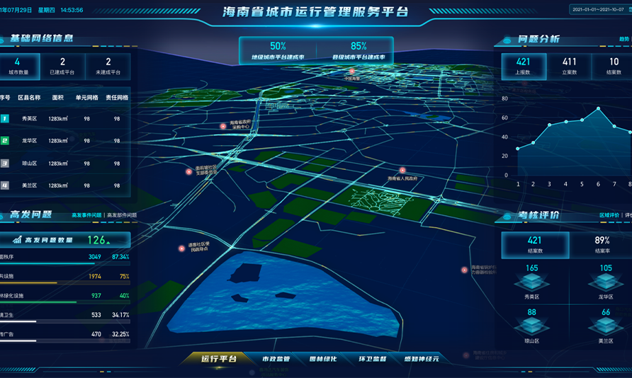 海南省在原有城市管理信息化工作基礎(chǔ)上,整合建設(shè)覆蓋20個市縣的海南省市一體化城市綜合管理服務(wù)平臺,初步形成全省城市綜合管理服務(wù)平臺智慧互聯(lián)、數(shù)據(jù)共享、協(xié)同高效,打造集精準監(jiān)測、主動發(fā)現(xiàn)、智能處置的城市“一盤棋”治理體系,增強城市管理綜合統(tǒng)籌能力,提高城市科學化、精細化、智能化管理水平。