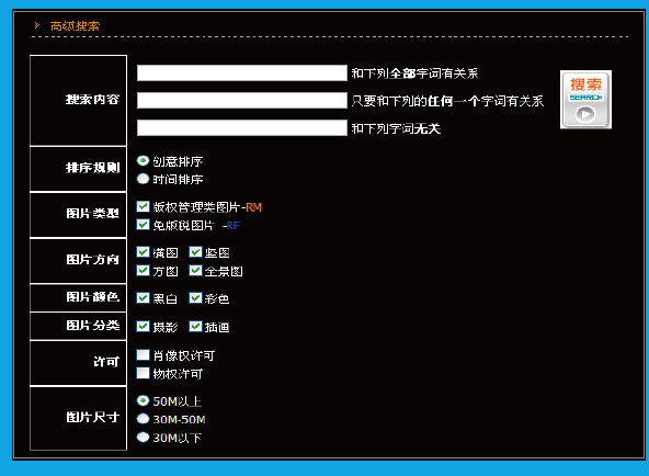 基本搜索:可根據(jù)圖片的編號(hào)、攝影師、關(guān)鍵字、標(biāo)題進(jìn)行匹配搜索,還可以按照版權(quán)類別(RM/RF )或肖像權(quán)和物產(chǎn)權(quán)來進(jìn)行分類搜索;高級(jí)搜索:可根據(jù)圖片不同條件的關(guān)鍵字、形狀、大小、類別來精確查詢;結(jié)果中查詢:可在現(xiàn)有結(jié)果中進(jìn)行再次搜索。