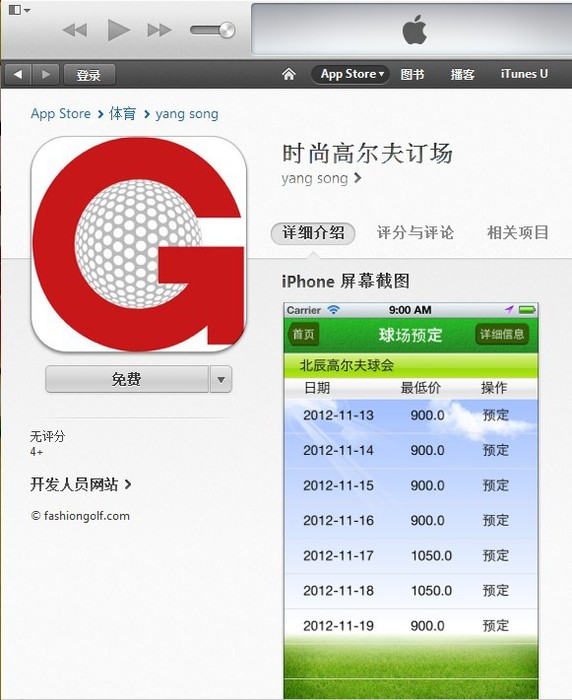 高爾夫訂場手機客戶端,在iTunes Stonre成功上線