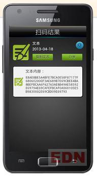 用加了解密程序的掃描終端可以識(shí)別到具體內(nèi)容: