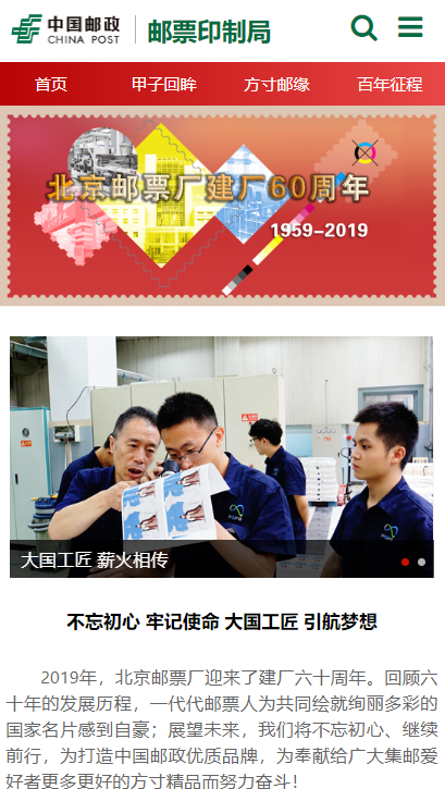 2019年,北京郵票廠迎來了建廠六十周年。回顧六十年的發(fā)展歷程,一代代郵票人為共同繪就絢麗多彩的國家名片感到自豪;展望未來,我們將不忘初心、繼續(xù)前行,為打造中國郵政優(yōu)質(zhì)品牌,為奉獻(xiàn)給廣大集郵愛好者更多更好的方寸精品而努力奮斗!