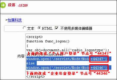 window.open('/servlet/Node?Node=44290'); (此行對(duì)應(yīng)“個(gè)人用戶(hù)登錄”節(jié)點(diǎn)號(hào))
