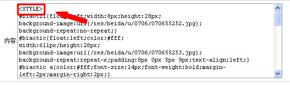 可以在內(nèi)容中寫代碼了,如果不是有別的段落和列舉用的CSS文件,可以直接寫在這個段落中,用<style></ style >框住,在其中定義顯示樣式,如背景色,字體,樣式等。