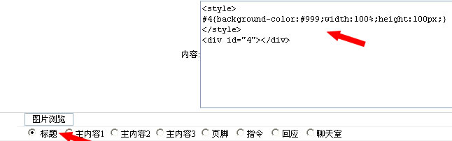 完成了總的CSS定義后,我分別建立了5個段落,分別放入內(nèi)容1\內(nèi)容2\內(nèi)容3\標(biāo)題\頁腳內(nèi),如下圖: