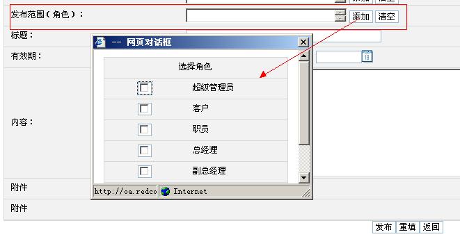 選擇了部門后,點(diǎn)擊關(guān)閉,關(guān)閉了彈出的窗口,還可以選擇角色如圖: