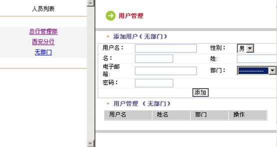 在人員列表點擊要添加用戶的部門,然后填入用戶名、名、姓、電子郵箱、密碼,選擇性別,點擊添加,用戶便添加完成了;也不用點擊部門,可以直接在添加用戶時選擇部門。用戶名、名及用戶密碼是必須填寫的,其余可以不必填寫。