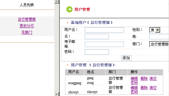 如果要編輯某一用戶,點擊該用戶后面的編輯,便可以重新修改該用戶資料了;點擊刪除將會刪除該用戶;點擊清空密碼,該用戶密碼將會被清除,用戶便可以重新設(shè)定密碼了。