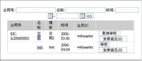 輸入合同號、名稱或者時間中任意,點擊GO按鈕便可以方便找到滿足條件的合同了。