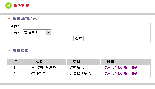 在編輯/添加角色中,添加角色的名稱并選擇角色的類型,點擊提交按鈕。