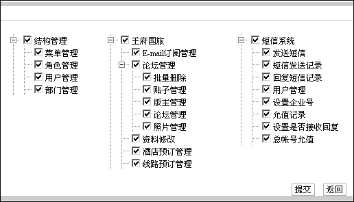 對角色進行授權(quán),點擊權(quán)限設(shè)置,在可以允許該用戶對其內(nèi)容進行操作的項目上打勾,點擊提交完成。