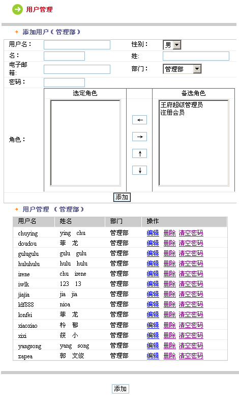 用戶管理:URI:/jsp/admin/popedom/user.jsp