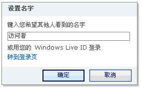 如有MSN帳戶,使用其他帳戶登錄進(jìn)入。無帳戶點(diǎn)擊“發(fā)送匿名消息”進(jìn)入設(shè)置名字窗口: