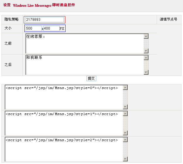 <script src="/jsp/im/Msns.jsp?style=2"></script>是以本機(jī)MSN聊天窗口模式。