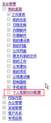 “我的桌面”的最后一個(gè)子菜單就是我們剛剛添加的“個(gè)人客服MSN配置”。如下圖: