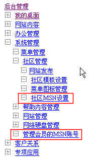 進(jìn)入系統(tǒng)管理下的社區(qū)管理下的“社區(qū)MSN設(shè)置”,如下圖: