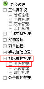 菜單建好后,點(diǎn)擊辦公管理,進(jìn)入辦公管理頁面,點(diǎn)擊組織機(jī)構(gòu)管理菜單,打開下拉菜單,如下圖:
