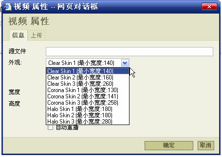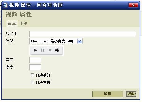2、點擊多媒體編輯器圖標,會彈出視頻屬性的對話框