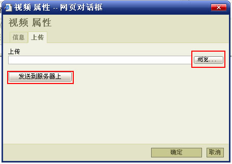 點擊瀏覽選擇要上傳的視頻文件,然后點擊發(fā)送到服務(wù)器上,上傳成功后點擊確定,信息中的源文件后邊的文本框里就會自動顯示上傳到服務(wù)器的路徑。