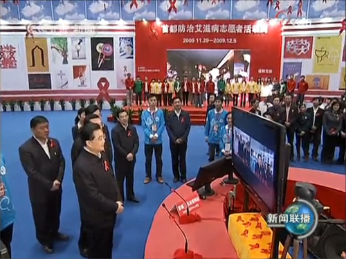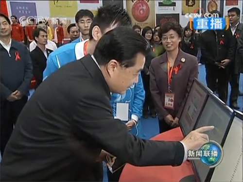 11月30日上午,在第22個世界艾滋病日到來之際,胡錦濤總書記和中共中央政治局常委、國務(wù)院副總理李克強來到國家會議中心,參加首都防治艾滋病志愿者活動。胡錦濤代表黨中央,向為防治艾滋病作出貢獻的廣大醫(yī)療衛(wèi)生工作者和志愿者表示誠摯的問候。