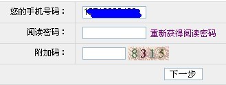 等待手機獲取閱讀密碼后,將獲取的閱讀密碼填入上圖閱讀密碼處,填寫附加碼,點擊下一步呈現(xiàn)如下頁面: