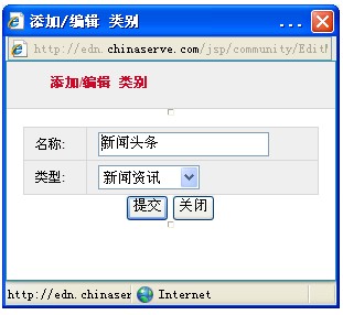 4、點(diǎn)擊創(chuàng)建按鈕彈出新的窗口,在新的窗口中輸入類(lèi)別名稱(chēng)及選擇類(lèi)別的類(lèi)型,點(diǎn)擊提交自定義文章分類(lèi)就建好了;在自定義文章分類(lèi)建好的同時(shí)系統(tǒng)會(huì)自動(dòng)在網(wǎng)站的列舉選項(xiàng)中和文章頻道選項(xiàng)中添加自定義文章的分類(lèi);自定義文章分類(lèi)創(chuàng)建頁(yè)面如下圖所示: