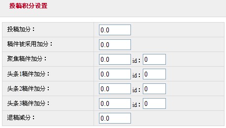 聚焦稿件加分:會員如果往聚焦稿件里投稿加的積分,id處添寫被選為聚焦的欄目的節(jié)點號;
