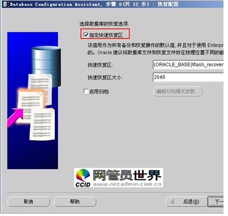 快速恢復(fù)區(qū)用于恢復(fù)數(shù)據(jù),以免系統(tǒng)發(fā)生故障時丟失數(shù)據(jù);啟用歸檔用于將數(shù)據(jù)庫設(shè)置為ARCHIVELOG模式,使得當(dāng)數(shù)據(jù)庫出現(xiàn)失敗時可以完全恢復(fù)數(shù)據(jù)庫數(shù)據(jù)。