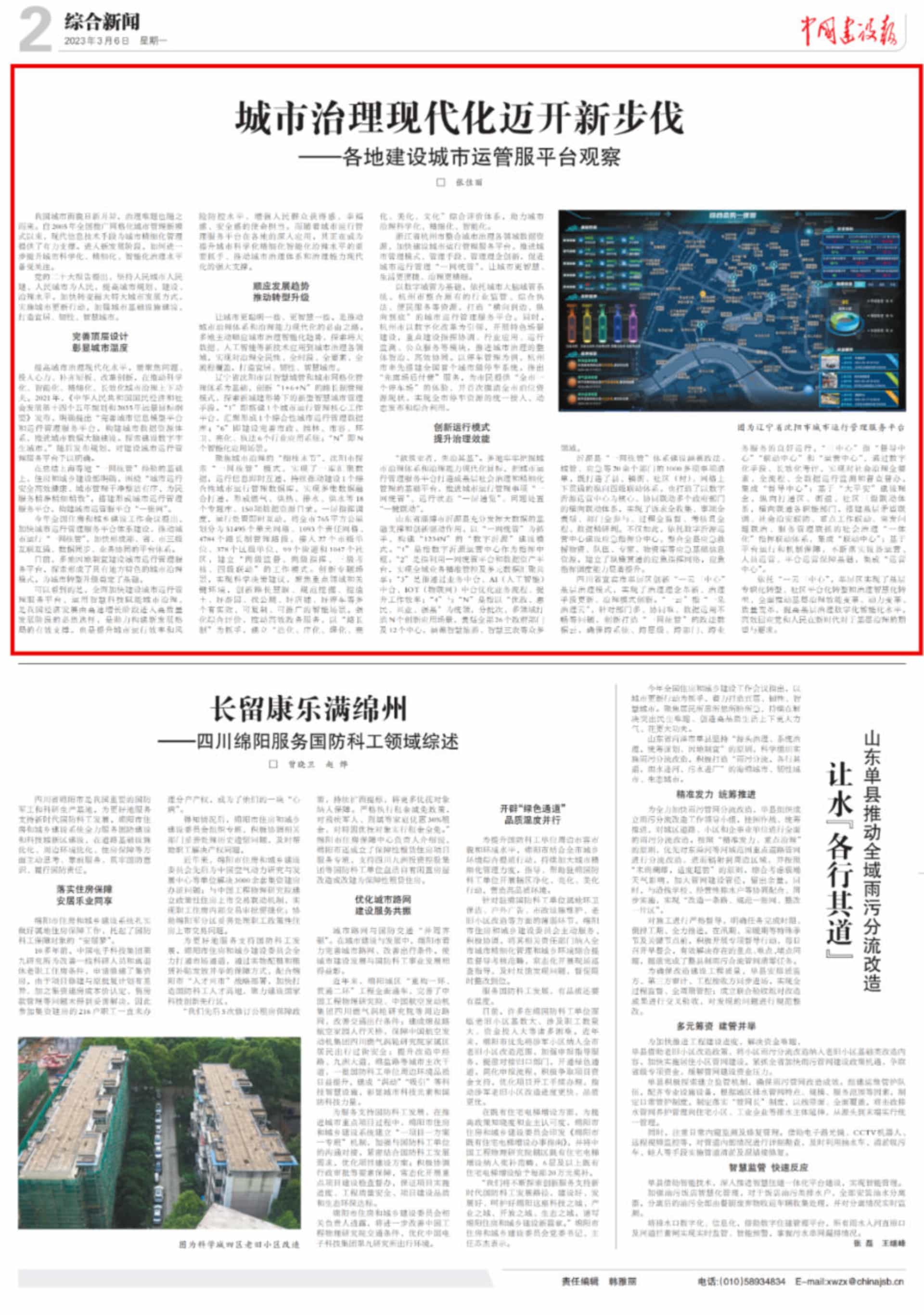 3月6日,中國(guó)建設(shè)報(bào)刊載文章《城市治理現(xiàn)代化邁開新步伐——各地建設(shè)城市運(yùn)管服平臺(tái)觀察》,介紹了沈陽(yáng)、杭州、...
