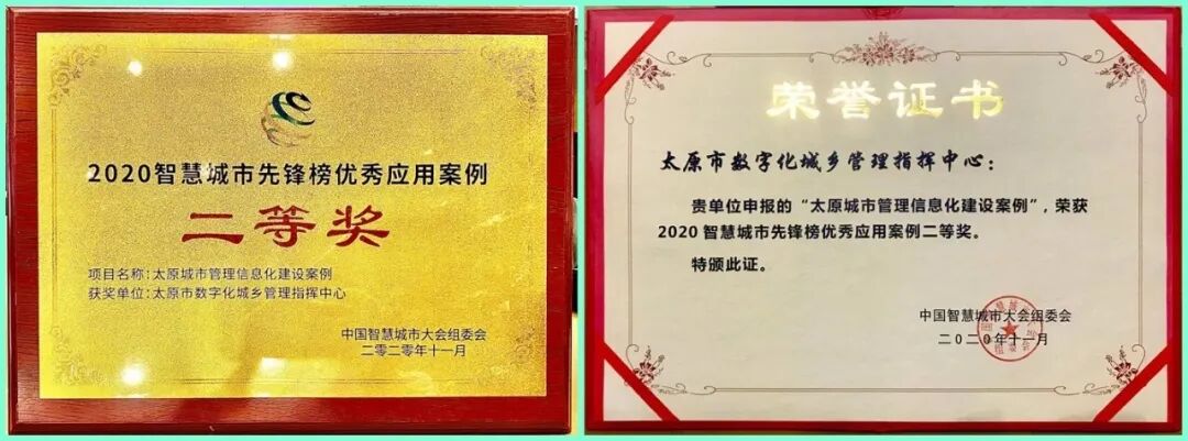 會(huì)上,數(shù)字政通承建的太原城市管理信息化建設(shè)案例、漳州市智慧城管一期暨城市綜合管理服務(wù)平臺(tái)項(xiàng)目分別榮獲“2020智慧城市先鋒榜優(yōu)秀應(yīng)用案例”二等獎(jiǎng)和優(yōu)秀獎(jiǎng)。