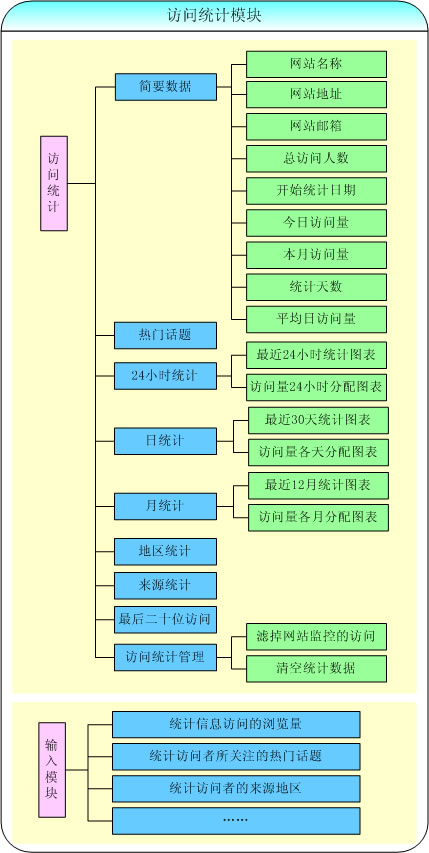 訪問(wèn)統(tǒng)計(jì)模塊由簡(jiǎn)要數(shù)據(jù)、熱門話題、24小時(shí)統(tǒng)計(jì)、日統(tǒng)計(jì)、月統(tǒng)計(jì)、地區(qū)統(tǒng)計(jì)、來(lái)源統(tǒng)計(jì)、最后二十位訪問(wèn)、訪問(wèn)統(tǒng)計(jì)管理等欄目組成。下面對(duì)這些功能逐一進(jìn)行介紹: