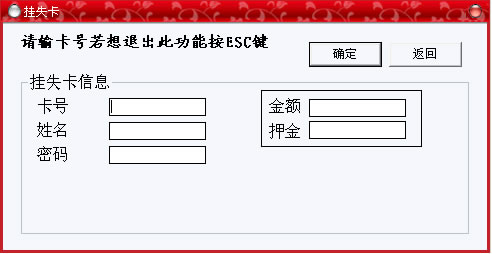 點(diǎn)擊“確定”按鈕,掛失成功,點(diǎn)擊“取消”按鈕取消本次操作,操作完畢后點(diǎn)擊“返回”按鈕退出。
