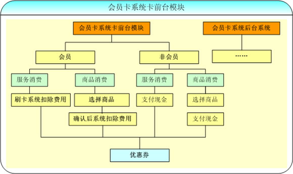 會員卡系統(tǒng)中的卡前臺操作模塊主要是針對用戶的刷卡消費進行的直接操作,根據(jù)卡類型的不同又分為會員服務(wù)類消費和購買商品消費兩種操作,是會員卡管理系統(tǒng)中一個重要的組成部分。