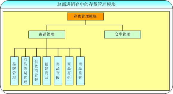 加盟店管理系統(tǒng)的存貨管理模塊作為總部進(jìn)銷存功能中一部分,主要用來實(shí)現(xiàn)對進(jìn)銷存系統(tǒng)的基本信息管理,包括了對商品的管理和對倉庫的管理,該模塊是加盟店管理系統(tǒng)中一個重要的組成部分。